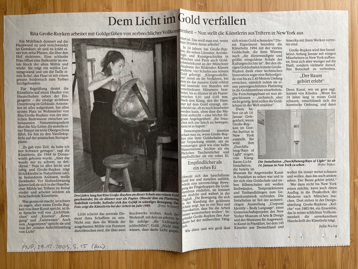 Rita Große-Ruyken arbeitet mit Goldgefäßen von zerbrechlicher Vollkommenheit. Nun stellt die Künstlerin aus Triftern in New York aus